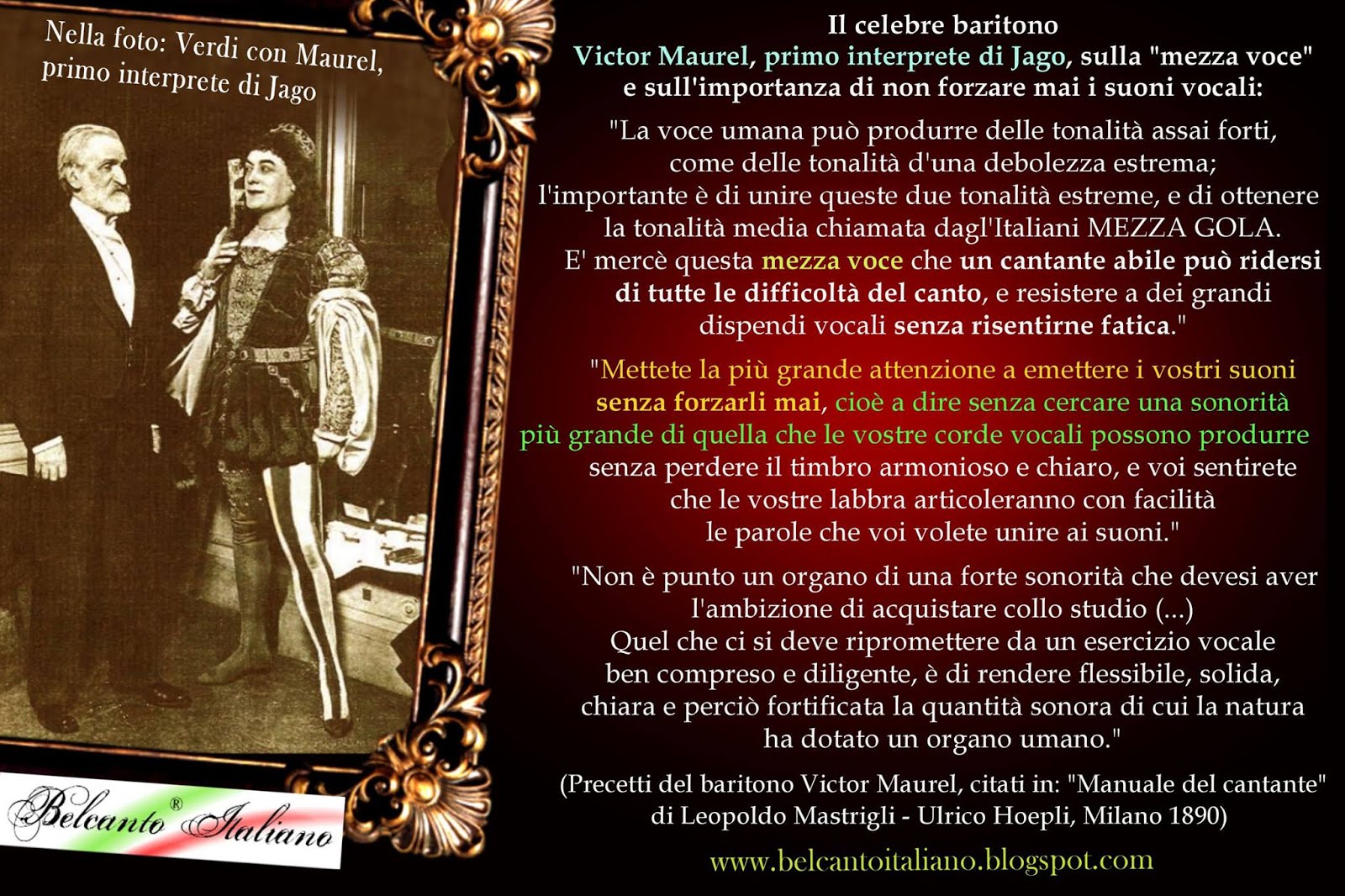 (Precetti del baritono Victor Maurel, citati in: "Manuale del cantante" di Leopoldo Mastrigli - Ulrico Hoepli, Milano 1890)